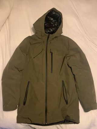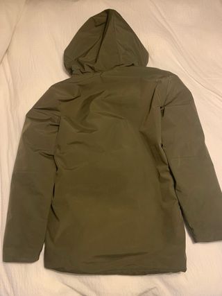 1 Abrigo acolchado Green Coast de invierno en tono verde oliva. Es una prenda cálida y con un diseño moderno. Es liviana - Cierre de cremallera y botones. - Capucha con cordones. - 2 Bolsillos. - Cremalleras laterales