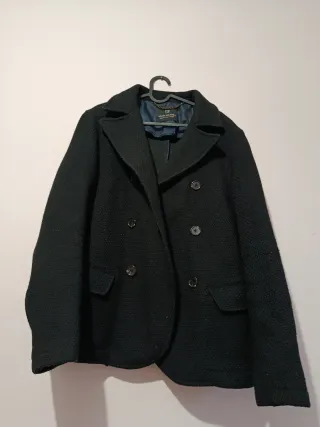 Abrigo de la marca Zara con un diseño elegante y moderno. Talla M. También válido para una talla S. - Tejido de espiga. - Cierre de botones. - Cuello alto. - Hombreras.