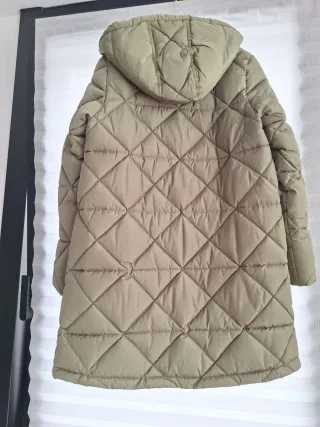 Abrigo acolchado de la marca Bimba y Lola. - Nuevo con etiquetas - Diseño acolchado con rombos. - Capucha. - Cierre de cremallera. - Bolsillos laterales con cremallera. - Cordones ajustables en el bajo.