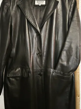 Elegante abrigo largo de piel ovino 100% natural. - Piel de ovino 100% natural. - Color negro. - Marca Windsor. - Marca talla 44 pero es pequeña, equivale a una L
