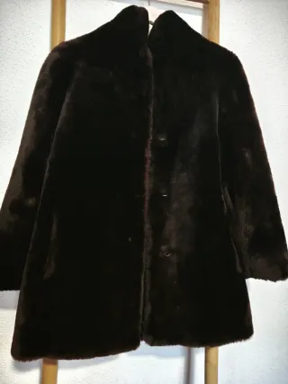 Elegante abrigo de piel de tipo moutòn(piel de cordero karakul tratado),en impecable estado y sin ningun defecto!!..conserva los cierres originales,tiene bolsillos laterales y es de estilo vintage de alta calidad No tiene etiquetas,por las medidas es una talla M - Color marrón oscuro. - Diseño clásico con cuello. - Tacto suave y cálido Precio negociable(razonable)