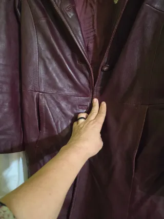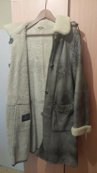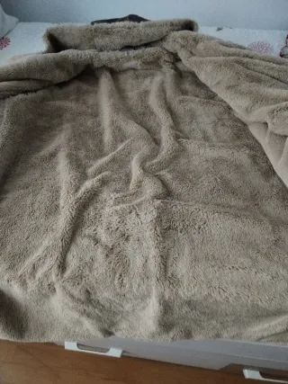 Abrigo de piel con forro interior . Todo natural. - Diseño largo. - Cierre de botones. - Bolsillos frontales. - con la capucha que se puede quitar Tiene un pequeño defecto en el bolsillo pero no se ve mucho. Por lo general esta en un buen estado. Hago envíos