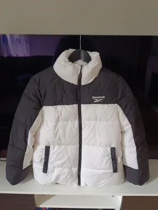 Abrigo Reebok reversible para mujer, en color blanco y negro, talla S. El abrigo está nuevo, no se ha usado ninguna vez. No conserva las etiquetas. Detalles del abrigo: - Material: 100% poliéster - Capucha forrada de cierre alto con práctico protector de barbilla - Cremallera completa para poner y quitar fácilmente. - Capucha ajustable con cordón para una juste óptima. - Bolsillos con cremallera y prácticos bolsillos deslizantes. - Puños elásticos para un uso cómodo.