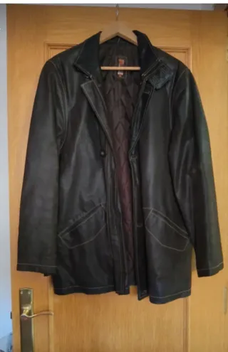 Abrigo de piel color marrón de hombre. - Cierre de botones. - Bolsillos frontales. - Talla 46/48.