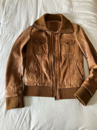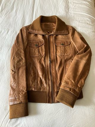 Cazadora Piel Marrón Mujer Talla M Entallada