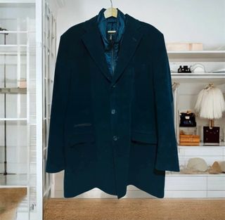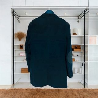 Elegante abrigo para caballero en tono azul marino. Presenta un diseño clásico con solapas y cierre de botones. - Dos bolsillos frontales. - Forro interior. - Detalle de cuello superpuesto. Abrigo azul marino largo de Titto Bluni talla 52 de tacto suave muy versátil, la parte delantera acolchada se desmonta mediante cremallera. Coderas marrones oscuras, es un abrigo para cualquier ocasión, tanto para ir de sport o formal. Es un artículo nuevo. De hombro mide 50 cm De sisa a sisa mide 65 cm De largo mide 95 cm #tittobluni52 #tittobluni #tittoblunihombre