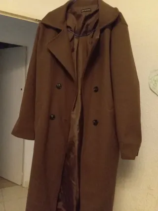 Abrigo de paño largo en color chocolate. Un clásico elegante para cualquier ocasión.es más oscuro que en las fotos un color marrón 🤎 chocolate 🍫 - Diseño de doble botonadura. - Cuello solapa. - Forro interior satinado.