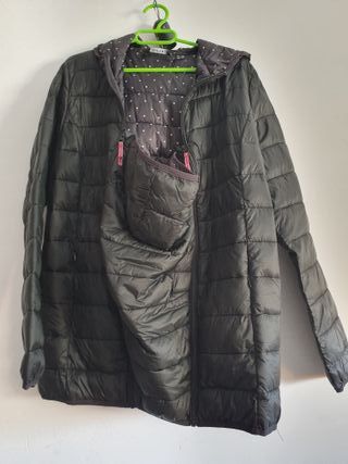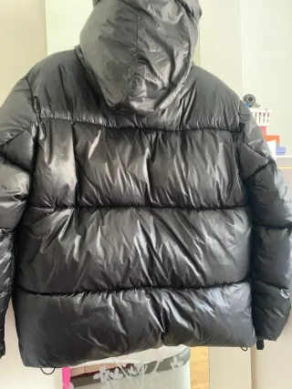 Abrigo acolchado con un acabado brillante y capucha. - Diseño acolchado. - Capucha integrada. - Cierre de cremallera. No hago envíos con correos