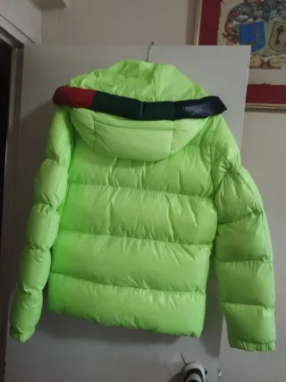 Abrigo acolchado verde y rojo