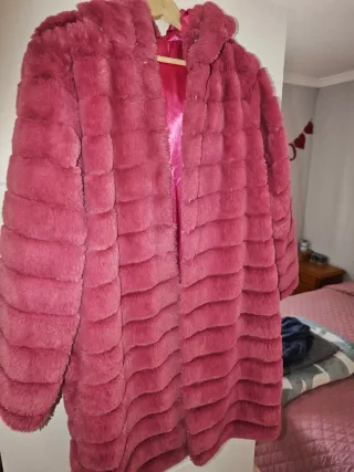 Abrigo rosa con capucha de polipiel