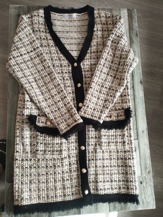 Abrigo tweed beige y negro