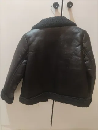 Abrigo de borrego con acabado tipo piel. - Cuello y puños forrados de borrego. - Cierre de cremallera. - Bolsillos laterales con cremallera. -Talla 5-6 años