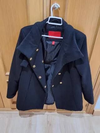 Abrigo elegante de color negro de la marca Mango. Bien cuidado y en muy buenas condiciones. Talla L. - Cierre de botones dorados. - Cuello con solapa. - Forro interior.