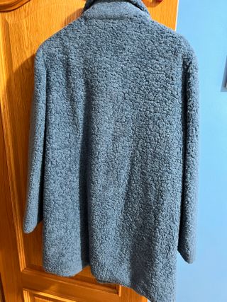 Abrigo de borrego de color azul Marca Trucco Usado un par de veces. Medidas: 52cm de sisa a sisa x 85cm de largo Tacto suave y agradable. Cierre frontal.