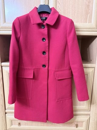 Abrigo de paño en color rojo, con un diseño clásico y elegante de la marca formula joven de el corte ingles. El largo es a medio muslo. - Cierre de botones. (3 exteriores y 1 interior). - Bolsillos frontales con solapa. - Cuello camisero.