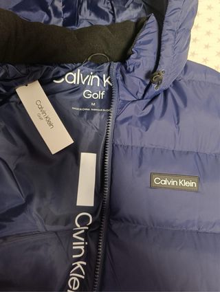 Abrigo acolchado de la marca Calvin Klein Golf. - Color azul marino. - Talla: M - Diseño acolchado. - Capucha integrada. - Cierre de cremallera frontal. - Bolsillos laterales con cremallera.