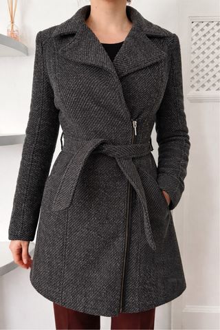Abrigo gris con cinturón