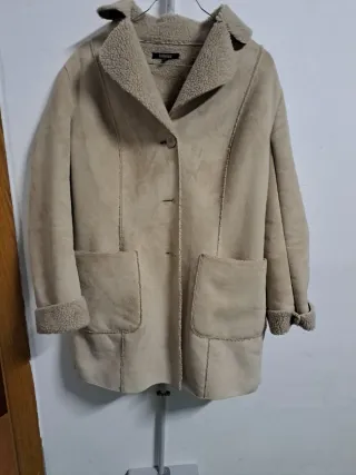 Abrigo de polipiel con un bonito acabado que imita al ante. Es una prenda versátil y elegante. - Diseño con paneles. - Cuello de pelo sintético. - Cierre de botones.