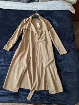Gabardina muy ligera con un diseño abierto y elegante. - Tejido con textura sutil. - Cinturón a juego. - Corte largo y fluido.