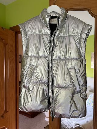 Chaleco acolchado de la marca Slowlove en color plateado. - Diseño sin mangas. - Cuello alto. - Cierre de cremallera frontal. - Bolsillos laterales. Oversize, sirve también para una talla M