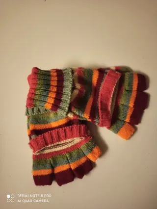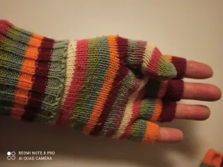 Guantes de punto sin dedos con un diseño de rayas multicolor. Son cómodos y mantienen tus manos abrigadas. - Diseño de rayas en varios colores. - Tejido de punto suave.