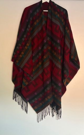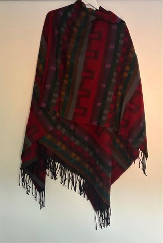 Preciosa capa tipo chal con un diseño geométrico y flecos. - Diseño de rombos y líneas en varios colores. - Acabado con flecos en el borde inferior. - Talla única.