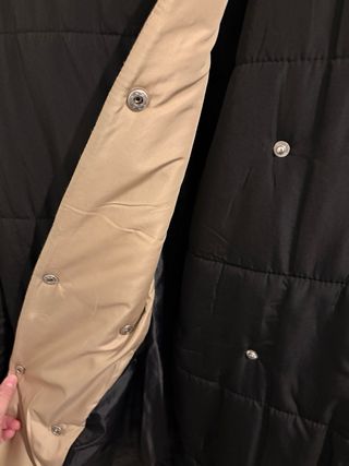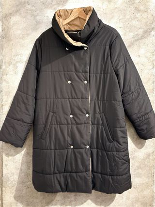 Abrigo largo con cuello alto y cierre con automáticos. Es un abrigo amplio, calentito y muy cómodo porque no pesa. - Diseño acolchado. - Bolsillos laterales. - Forro interior en contraste. Se vende por haber bajado de talla.