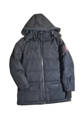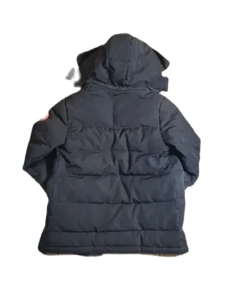 Abrigo de invierno de la marca Canada Goose. Tiene un pequeño desperfecto, se aprecia en las fotos - Color negro. - Diseño acolchado. - Capucha. - Bolsillos frontales.