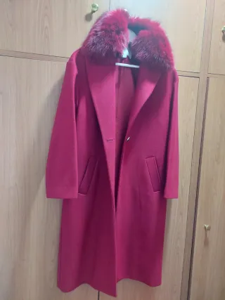 Elegante abrigo largo de Pedro del Hierro en un llamativo color rojo. Perfecto para añadir un toque sofisticado a tu vestuario. - Cuello con detalle de pelo desmontable. - Diseño de corte clásico. - Bolsillos frontales.