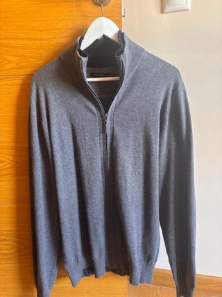Chaqueta de punto con cremallera frontal. - Cuello alto. - Puños y bajo de canalé. - Detalle de etiqueta en la parte inferior.