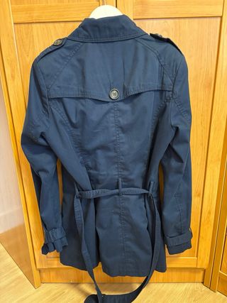 Gabardina de la marca Stradivarius en color azul. - Diseño de doble botonadura. - Cuello con solapas. - Puños con detalle. - Cinturón a juego.