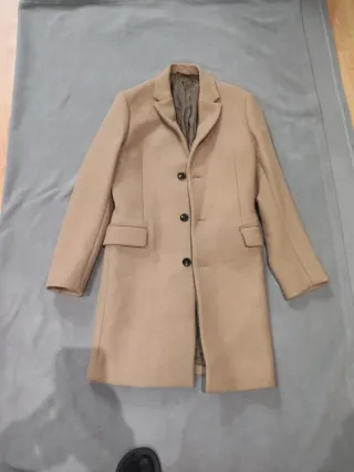 Elegante abrigo de color beige, talla S, perfecto para añadir un toque sofisticado a tu armario. - Diseño moderno y atemporal. - Cierre de un botón. - Bolsillos frontales. - Cuello solapa.