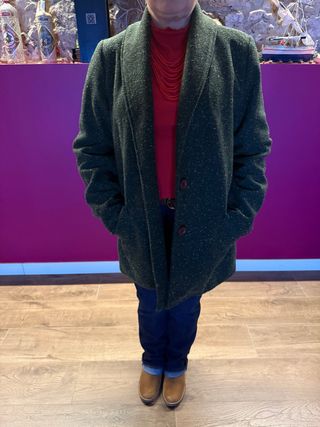 Abrigo ligero de la marca Tentazione, ideal para entretiempo. Su diseño versátil lo hace perfecto para cualquier ocasión. - Color verde oscuro con pequeños detalles. - Cierre de botón. - Bolsillos laterales.