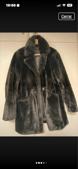 Abrigo largo sintético con forro interior de pelo. - Diseño elegante y cálido. - Acabado suave al tacto. - Detalle de pelo en cuello y puños.
