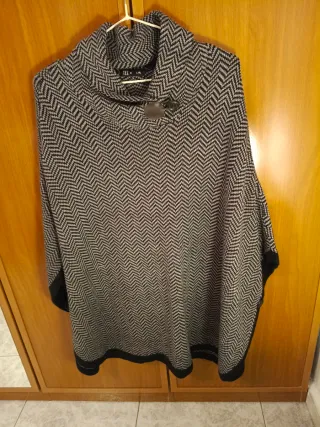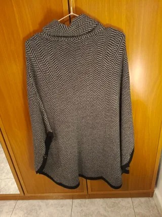 Poncho Mujer Negro Gris Talla L/XL