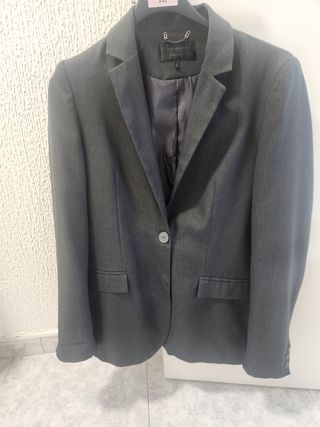 Chaqueta gris con rayas finas