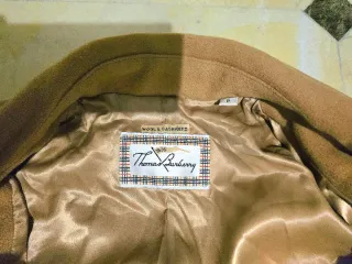 Elegante abrigo largo de Burberry. - Confeccionado de cachemira. - Color marrón clásico. - Forro interior satinado. - Cierre de botones. - Bolsillo de solapa en el frontal.