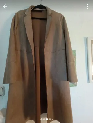Abrigo elegante de corte tres cuartos. - Diseño de solapa clásica. - Tejido de ante. - Manga larga. ⚡ Es un básico de armario ⚡ Pone talla L pero sirve también hasta la XL ,sienta bien en cualquier talla ⚡ Está a estrenar aunque no lleva etiqueta ✨Fluido y con estilo