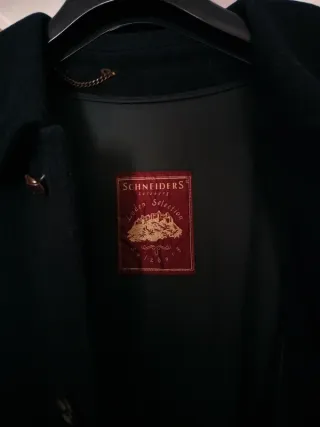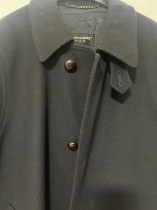 Abrigo clásico de la marca Schneiders Salzburg. Abrigo espectacular de la prestigiosa marca Schneiders Salzburg, usado apenas dos veces. Prácticamente nuevo. El tejido es auténtico Loden (lana virgen de alta calidad), en color azul marino y con el interior de cuadros. Corte largo y pliegue en la espalda. Botones también en puños. Talla: 48-50 (es bastante ancho)