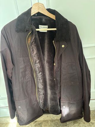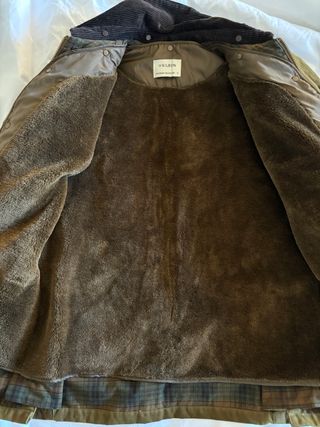 Abrigo de estilo encerado con forro interior cálido. Talla M. Usado muy pocas veces. - Cuello de pana. - Cierre de cremallera y botones. - Bolsillos frontales. PVP: 219,90€