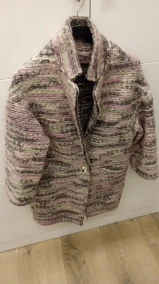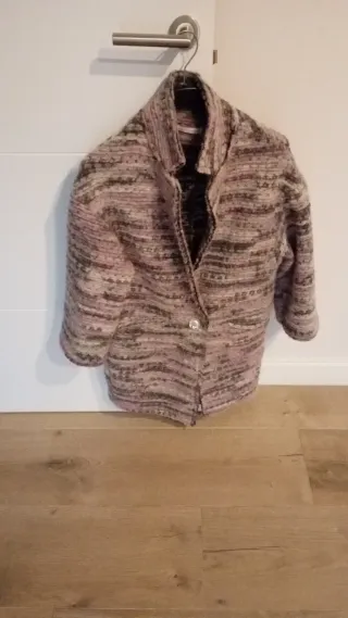 Abrigo tejido rosa y marrón