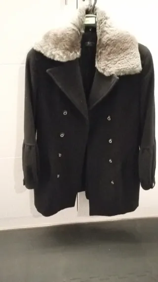 Abrigo negro con cuello pelo desmontable