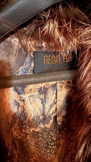 Abrigo vintage de pelo natural con un diseño único. - Color marrón y gris. - Cuello de pelo suave.