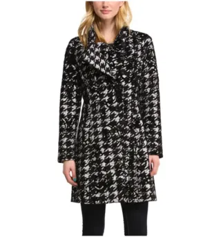 Elegante abrigo con estampado de pata de gallo. - Diseño clásico. - Cierre de botones. - Bolsillos frontales.