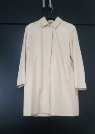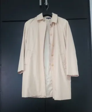 Abrigo de entretiempo en color beige. Como nuevo. Talla M. - Diseño clásico con cuello - Cierre de botones - Bolsillos laterales - Medidas: Hombros: 40cm. Pecho: 57cm. Largo: 89cm.