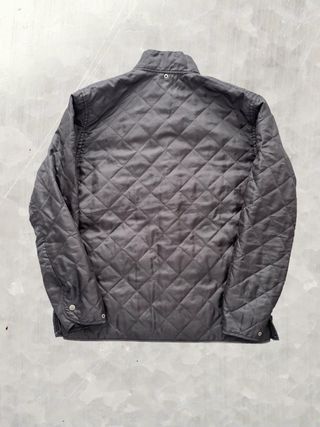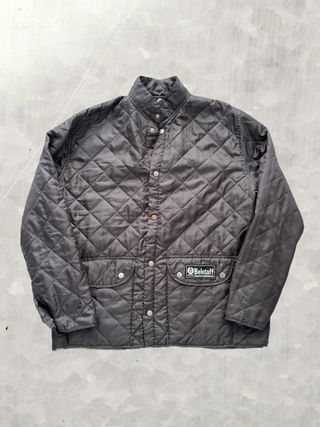 Chaqueta acolchada de la marca Belstaff en color gris. Diseño clásico y funcional. - Cuello alto con cierre de botones. - Cierre frontal de botones. - Dos bolsillos frontales con solapa y botón. - Detalle de logo de la marca en bolsillo derecho.