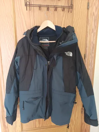 Chaqueta The North Face con forro polar desmontable. Summit Series Waterproof impermeable y respirable. - Diseño 2 en 1. - Combinación de colores negro y azul. - Cierre frontal con cremallera y botones. - Capucha ajustable. - Múltiples bolsillos frontales.