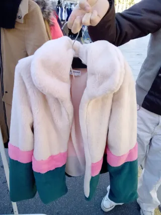 Abrigo de borreguito con detalles en contraste. - Diseño corto y moderno. - Cierre de cremallera. - Puños y cuello con acabado. - Dos bolsillos frontales. Es una xs pero le sirve a alguien hasta M