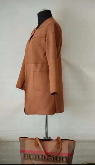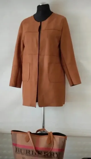 Abrigo fino de antelina con un diseño elegante y moderno. Ideal para añadir un toque sofisticado a tu atuendo. - Corte recto. - Cuello redondo. - Dos bolsillos frontales. - Cierre abierto.