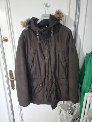 Abrigo acolchado de la marca Timberland, con un diseño moderno y funcional. - Combinación de colores marrón y beige. - Capucha integrada y desmontable. - Cierre de cremallera y botones. - Bolsillos laterales. - Ideal para invierno primavera. - Precio negociable con ofertas serias.